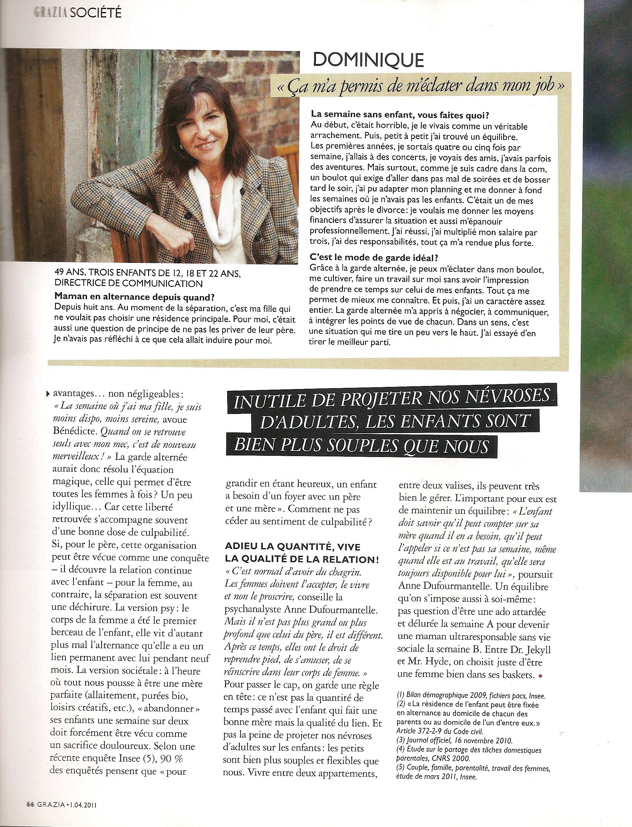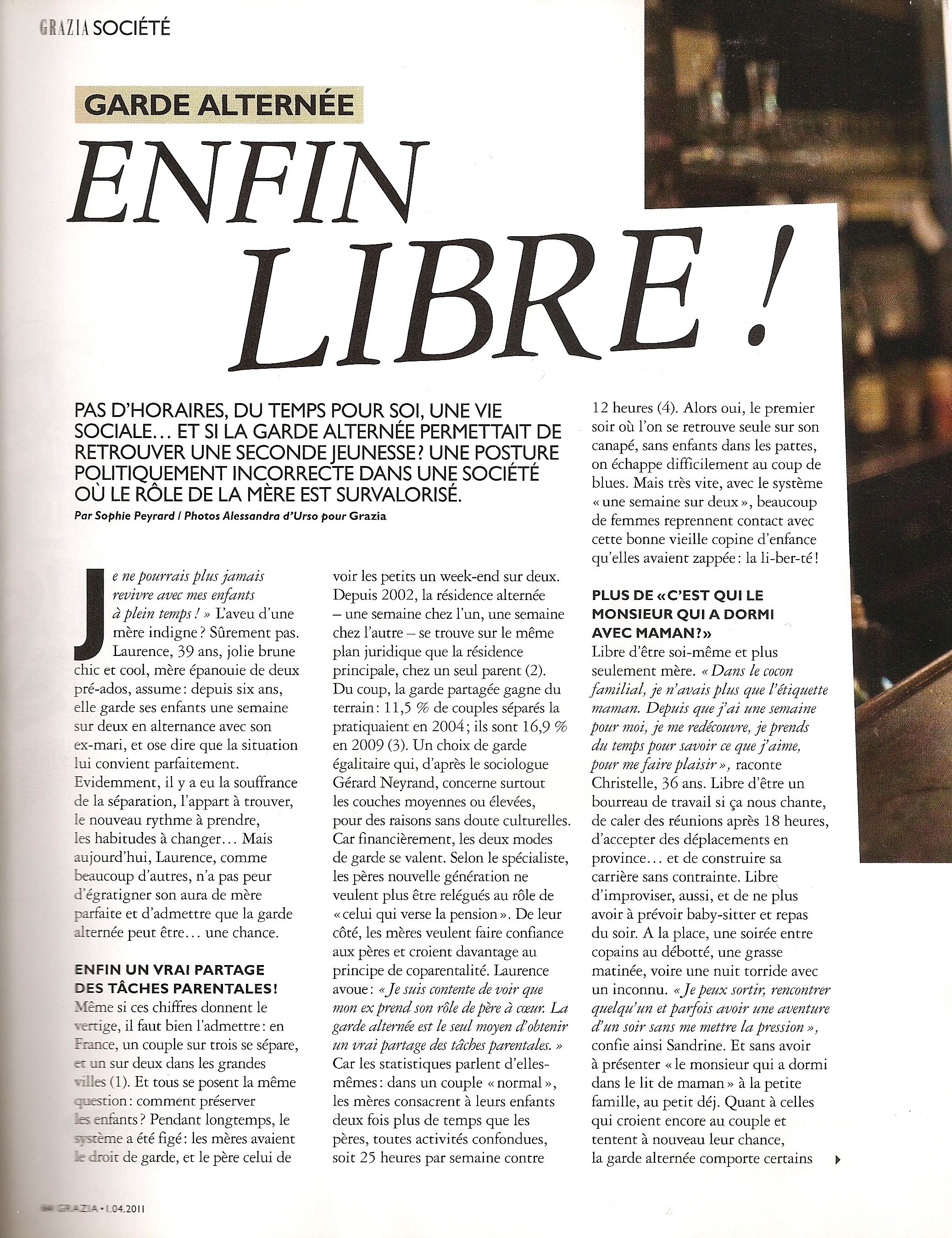 ENFIN LIBRE! Sophie05/01/201131/03/2013ARTICLES Post navigation PreviousNext Et si la garde alternée permettait aux femmes de retrouver une seconde jeunesse? Une posture controversée dans une société où le rôle de la mère est survalorisée. Like Loading... Related