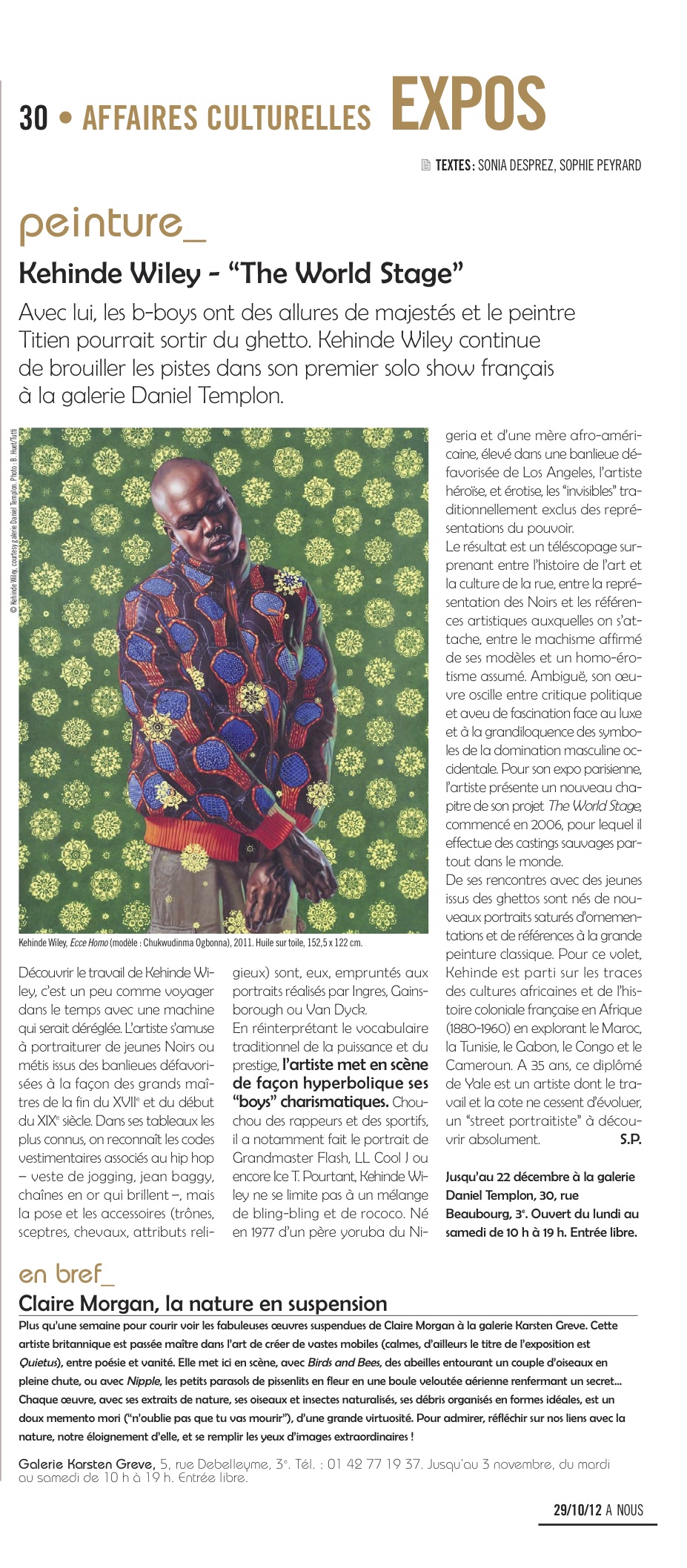KEHINDE WILEY Sophie02/12/201213/05/2013ARTICLES Post navigation PreviousNext Avec lui, les b-boys ont des allures de majestés et Titien pourrait sortir du ghetto. PARUTION A NOUS PARIS 27/10/2012 Pour lire l’article en PDF: 581-KWiley Share this:ShareTweetLike Loading... Related