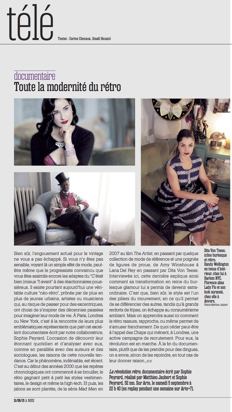 In Paris, New York, Berlin and London, this “neo-retro” community adopts not only a quaint appearance, but also the values and codes of the era (the 1920s to the 1960s). Some denounce the stagnation of pop culture over the last couple of decades and see this retro culture as a sign of a certain cultural regression, but many others believe vintage culture enables us to better live in the present.